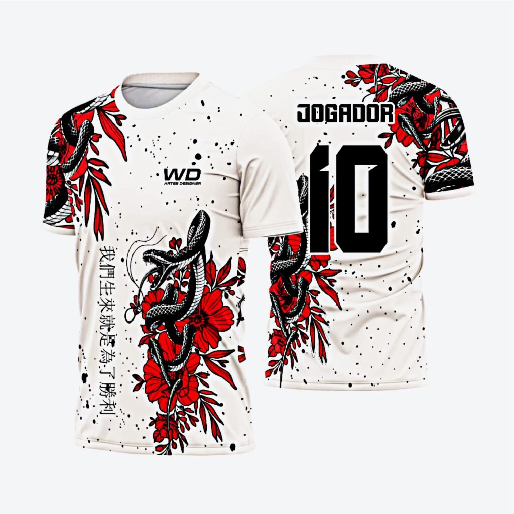 An arrangement of technology and design-related items on a white surface. Includes a laptop with the Apple logo, a smartphone displaying a design app interface, a black t-shirt featuring the phrase 'Design Makes Everything Possible', a mug with a similar design-themed phrase, a keyboard, and a saucer with a coffee cup. Various stickers and a black notebook are also present.